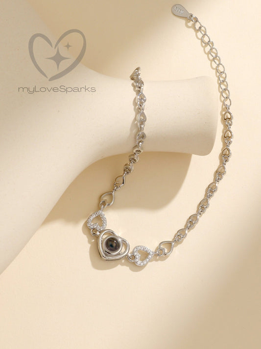Personalized Projection Photo Heart Bracelet with Embedded Zircons